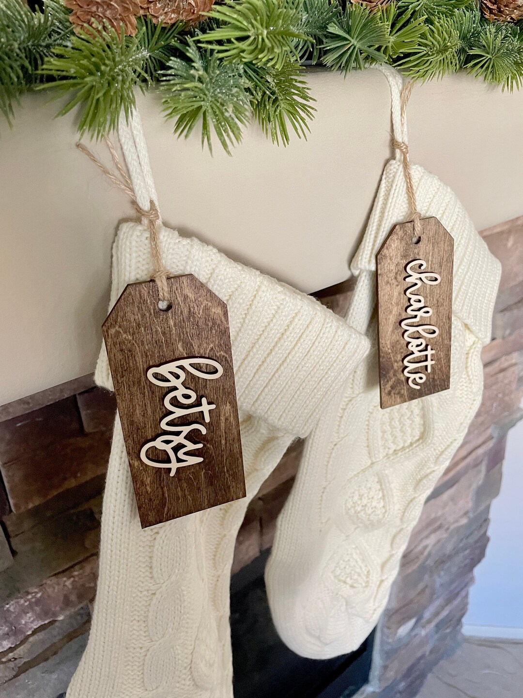 Christmas Stocking Tags Wooden Stocking Tags Custom Name Etsy